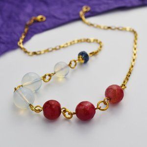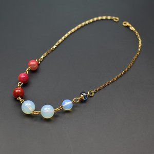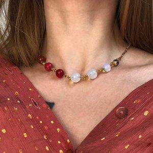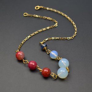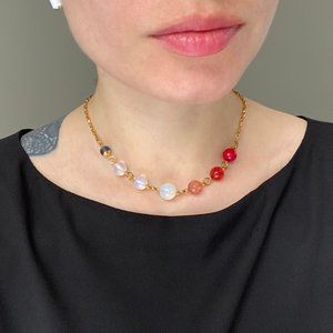 Multi stone necklace gold, colorful mismatched bead necklace