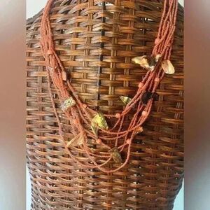 Accompanied by orange seed beads and multi stand abalone layers