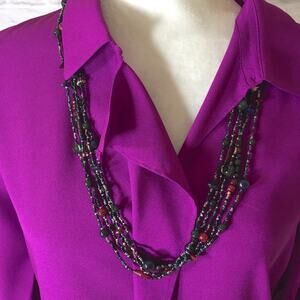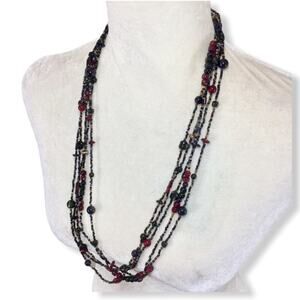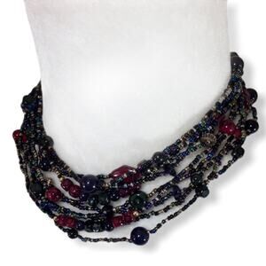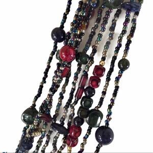 Multi strand mixed glass bead necklace in excellent pre owned condition. Approximate length 30.5" total length, can be doubled and worn as choker length on a small enough neck. Lobster claw clasp