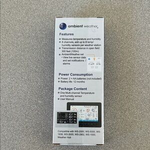 Monitor your environment with the Multi-Channel Temperature and Humidity Sensor. This sleek white device provides accurate readings to help you stay informed.