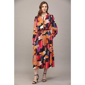 Multi-Color Abstract Long Sleeve Maxi Dress