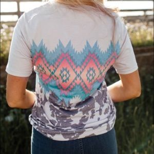 Super soft Aztec print top that looks a little vintage. The faded look really blends well and makes the top pop when you have it on. The colors are really nice and the pink tones are vibrant.