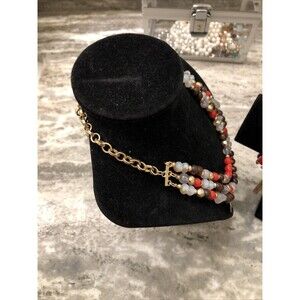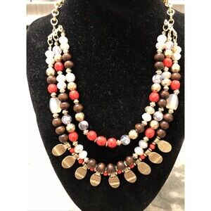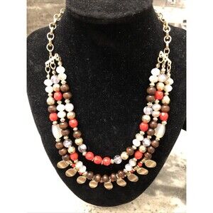 Multi-Color Bead, Glass, Resin Necklace Gold Tone Three-Strands with Bracelet