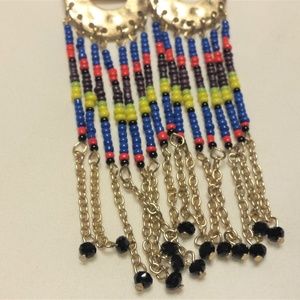 Multi-Color Bead and Chain Dangle Earrings