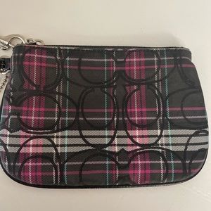 Checkered multi-color Coach wristlet. It is pre-loved but in good condition NOT NEW. Please review pictures for more details.