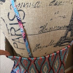 Flowy dress, spaghetti straps that are adjustable. Size Large, beautiful colors. It has a tan slip, not sheer. In excellent condition