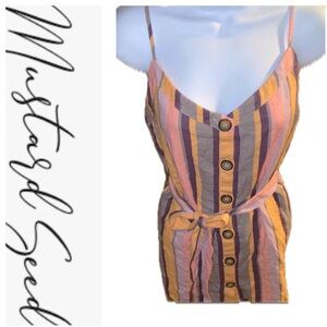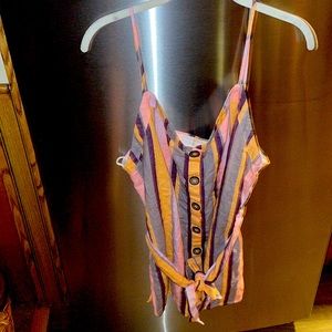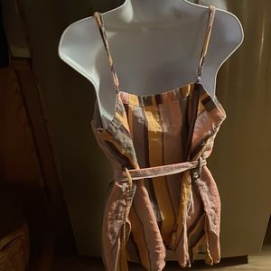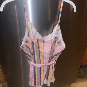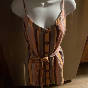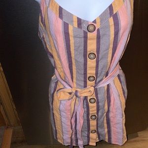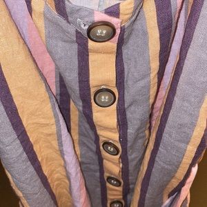 Brand new with tags. No stains, tears, rips, pilling, holes, shrinkage, discoloration, or any other flaws. No signs of wear or use. All buttons function as intended and are intact. 55% Linen & 45% Rayon. The fit is regular. The camisole straps are adjustable. The pattern is a multiple colored stripe. The stripes are also different thicknesses. All stripes are vertical. It is a combination of different pastel colors (light pink, lavender, orange, dark purple, & blue/grey). The pattern is on the front and back. There are medium sized buttons that go down the front of the top. They are a marbled brown. The dress comes with an extra (attached to the tag). There are belt loops and a fabric belt that matches the pattern of the camisole. It can be tied in a knot or a bow on the front or the side. It is a nice casual top. It pairs very nicely with jeans, white pants, pink pants, and khakis. It is perfect for the spring, summer, the beach, and vacation. It’s also nice for family get togethers, birthday parties, baby showers, barbecues, dates, and other casual events. Bundles of any 2 or more items are 30% off in my closet. Mix or match the categories. Comment with any questions.