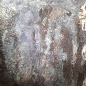 Dyed Grey and Patyerned Brown Rabbit fur cape / coat with arm holes. Dry clean only fur tag inside of coatBrand "Lori Wilkins for OH". One Size