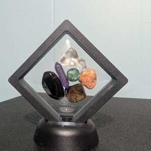 Showcase your style with this elegant gemstone display case. Featuring a variety of vibrant stones, this accessory adds a touch of color to any space. Perfect for collectors and enthusiasts.