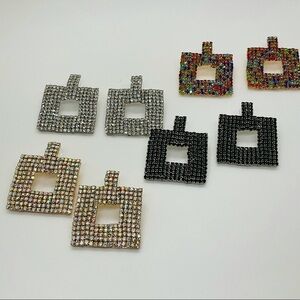 Multi-Color Geometric Diamond Studded Rhinestone Drop Earrings