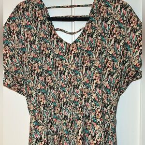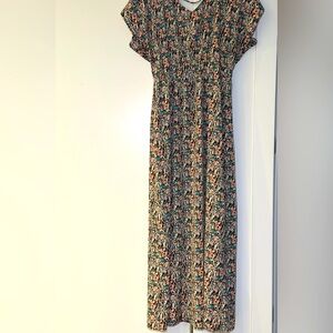 This Boutique purchased dress can make a versatile addition to your wardrobe. Wear with sandals or heels. Long, short sleeves with cutout on the shoulder, fitted at the waste.