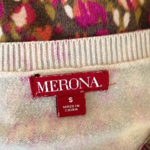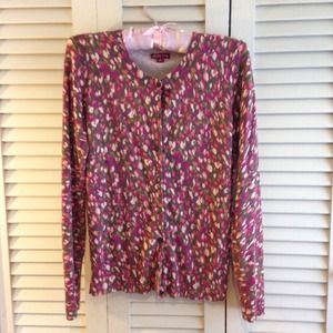 A nice wardrobe stable, with terrific pattern and colors that work from Spring to Fall. Long sleeves, crew neckline, button up, in 92%Cotton, 6% Nylon, 2% Spandex. Very slight pilling evident on dark parts, priced accordingly.