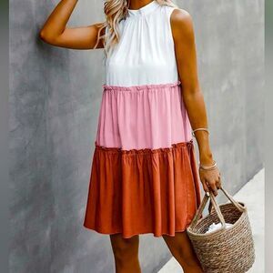 Mock Color Block Ruffle Dress