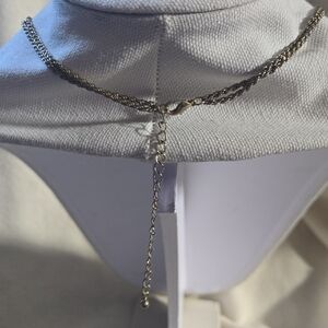 Gold double twisted chain. The chain looks two-toned. It looks silver in some light and gold in other lighting.