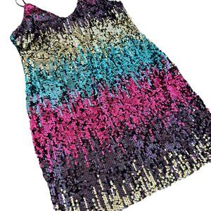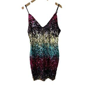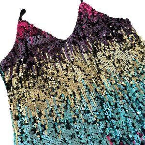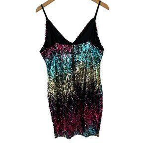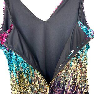 MultiColor Ombre Mermaid Sequin Mini Dress Size Large Y2K Disco Glam
