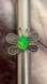 For your consideration is this adorable ring featuring a prominent multi-color opal gemstone set in the center of the butterfly's body, displaying vibrant green, blue and yellow hues. The butterfly's wings are crafted with an oxidized background and framed by a rope-twist border, adding a decorative element to the design. The ring is a size 8 and has a weight of 9 grams.