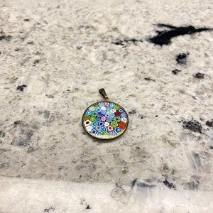 Multi color round pendant. Please see pics for condition and estimated measurements. In new condition. Please see my other listings, will bundle with other items to save on shipping.