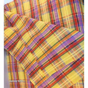This vibrant multi-color plaid fabric is perfect for various sewing and craft projects. Durable and stylish, it's suitable for garments, home decor, or quilting. Ideal for creating eye-catching pieces with a pop of color.