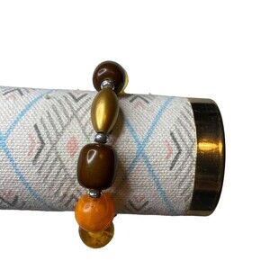 MultiColor Plastic Beaded Orange Pink Yellow Cream Stretch Bracelet