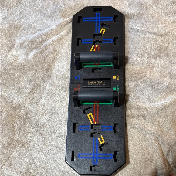 Enhance your workout with the Push-Up Board. Featuring a sleek black design with vibrant blue, red, yellow, and green accents, this board is perfect for targeting different muscle groups. Ideal for home fitness enthusiasts.