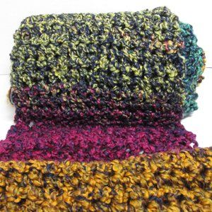 These handmade scarves I make with loose knit crochet stitches will sometimes shrink or stretch out. The measurements are taken when newly made before I pack them into inventory storage.