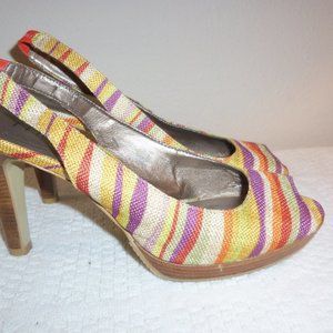 Moda - Multi – Color Gold, Orange, Purple, Rust, Lime Green. Slingback, Size 9, 3 ½ heel. This shoe will add the perfect touch to dress up any outfit.