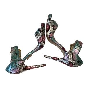 Michael Antonio multi-color snake print heels. Hardware slightly discolored but shoes are still super cute.