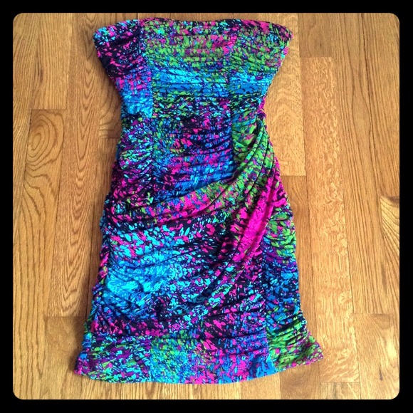 Multi-Color Splash Tube Ruche Dress
