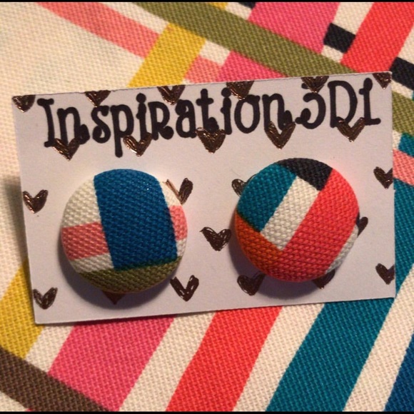 Multi-Color Stripes Button Earrings