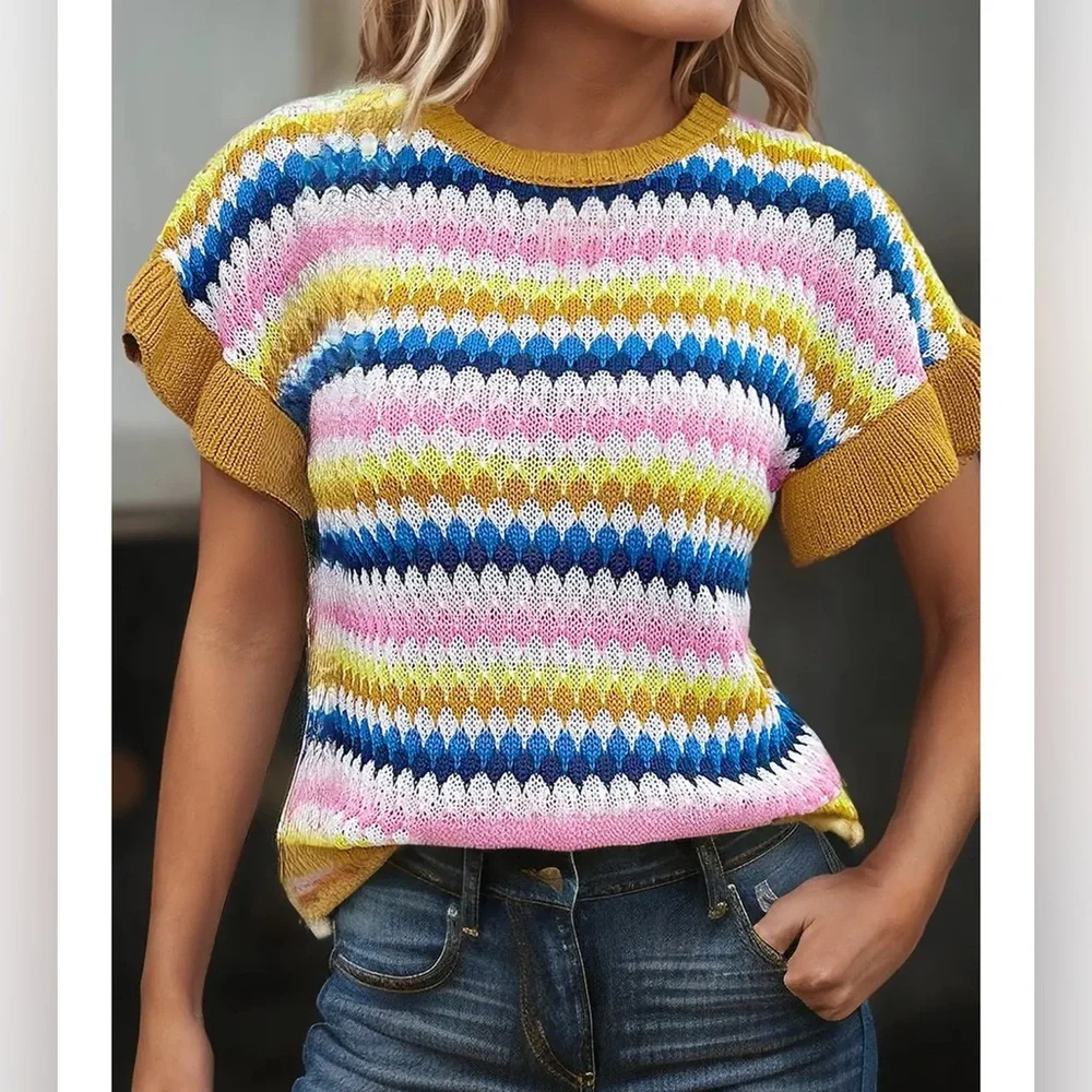 Multi-Color Textured S/S Sweater