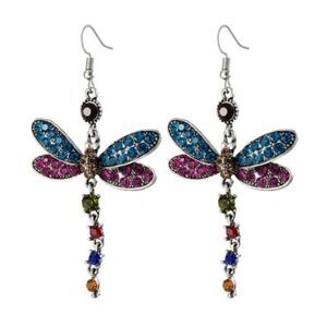 Silver Dragonfly Multi Colored Gem Earrings. They are about 2 inches in length.