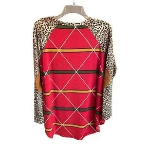 A- B12- this cute lightweight top will go with almost anything. Adorable with leggings, jeans, and even shorts. Measures 17 inches pit to pit and 27 inches from the top of the shoulder down to the bottom of the top.