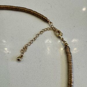 This exquisite necklace showcases a harmonious blend of gold, turquoise, cream and grey colored beads, arranged in a delicate stacking pattern. The necklace is designed to sit gracefully close to the neck, offering a minimalist yet elegant look. Its subtle clasp ensures a seamless finish, making it a versatile accessory for any occasion. Adjustable length: 16” to 19.25”