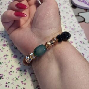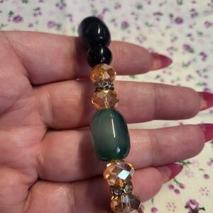 Black, Pink, Carnelian, Green agate, Brown agate Stretch Bracelet offers a bold statement piece with genuine Onyx beads, Crystal spacers and CZ silvertone spacers. The elastic band ensures a snug, comfortable fit for wrists of various sizes, allowing for easy wear and removal without compromising style. The richly colored beads will be an eye-catching addition no matter the occasion.