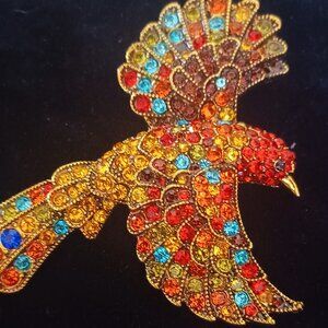 This Great Colorful Bird Brooch measures just over 3" long, with a 3" wing span!