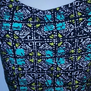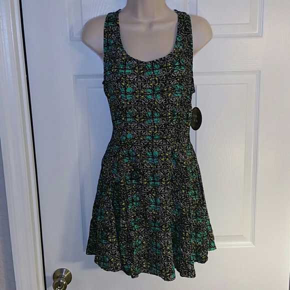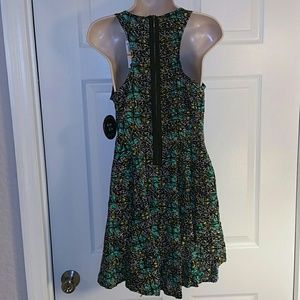 Cute mini dress with racerback and back exposed zipper. Approximately 32" from shoulder to hem.