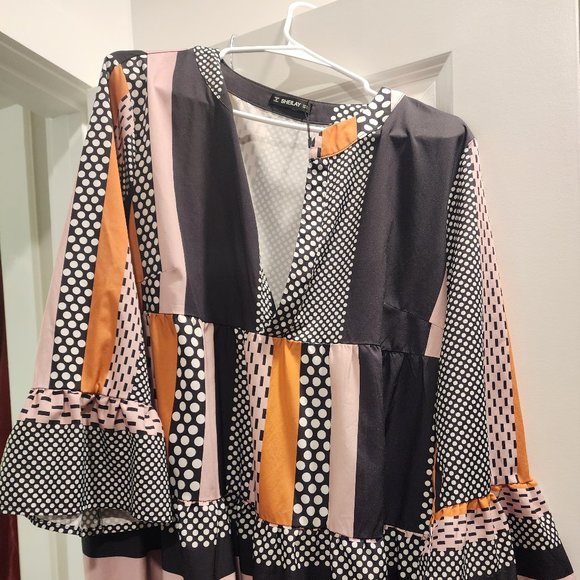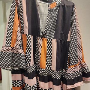Multi-colored midi long sleeve dress. This beautiful geometric dress is breathable and airy. Great for date night or an event.