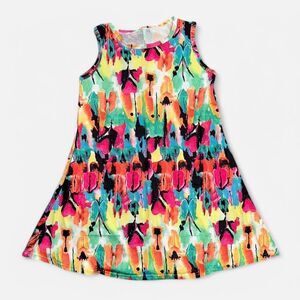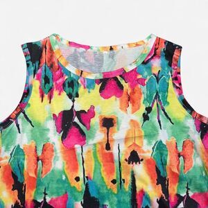 Blurred colorful splash pattern sleeveless tshirt mini dress. Has hidden pockets!