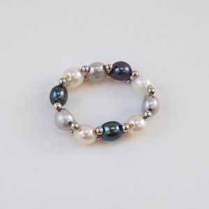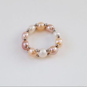 ‼️Pearls are button shaped & strung together with sterling silver beads on elastic wire. Ring is approx. 3” around & is stretchable to fit most finger size‼️