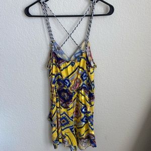 Multi-colored strappy romper with pockets
