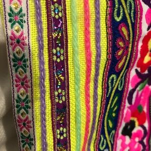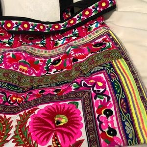 This Travel Bag (or Pocketbook) has Beautifully Colored embroidered Birds and Flowers on it. Pink, Red, Yellow, Black, Green. This is TRULY a Stunningly Gorgeous Bag!