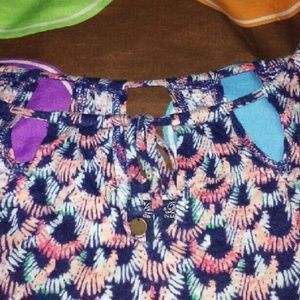 Fun print top with many colors and a fun design. Looks amazing with black skinny jeans and flats:)