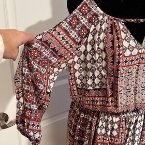 Rayon dress. Blue/red multi color design dress.