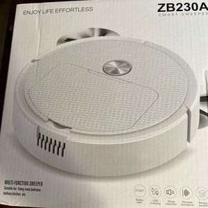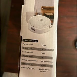 Suitable for: Living room, bedroom, hallway, kitchen etc. NIB! This model is black and comes with battery. Can be re charged . Box measures 11” x 11”. The sweeper is slightly smaller.