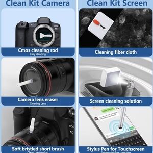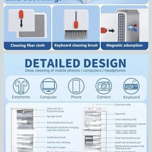 Versatile cleaning kit for electronics. Includes cleaning fiber cloth, keyboard brush, and more. Features magnetic adsorption for easy use. Kit is brand new, but opened. Missing one small brush while opening. Nothing used.
