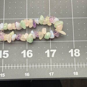 Multi-Gemstone Chip Beaded Long Strand Necklace Pastel Colors Green Pink & Laven