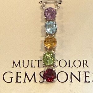 Multi-Gemstone Linear Pendant Necklace- Sterling Silver-R.H. Macy & Co Brand New