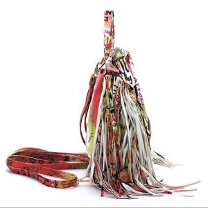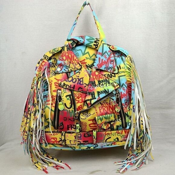 Multi Graffiti Motorcycle Jacket Fringe Backpack