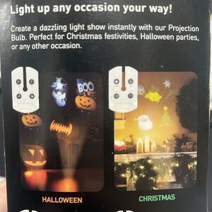 Vibrant LED light with 4 interchangeable holiday slides.. Projects colorful designs. Globe brand innovation. See pics for details! I had these showing on my ceiling but this would be super cute on a porch shining down on a walkway.