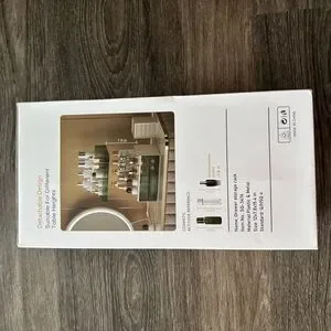 Versatile multi-layer drawer storage rack in gold. Designed for organized countertop storage of cosmetics and toiletries. Includes stacked shelving and a pull-out drawer for easy access. Durable plastic and metal construction for stable use. Elegant gold finish adds a polished look to any space.